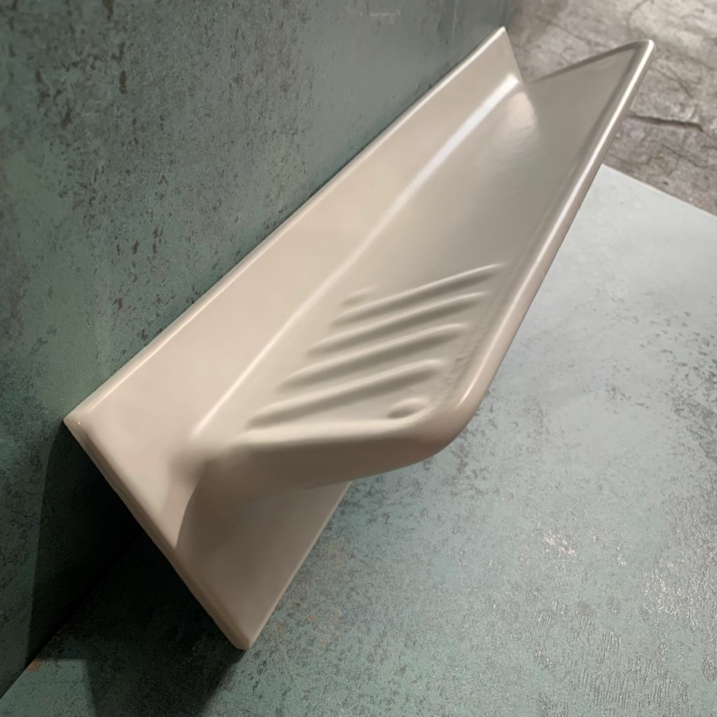 RD95 100×300 Satin White Shower ShelfRD x Satin White Shower Shelf DetailCaramela White LifestyleCaramela Series